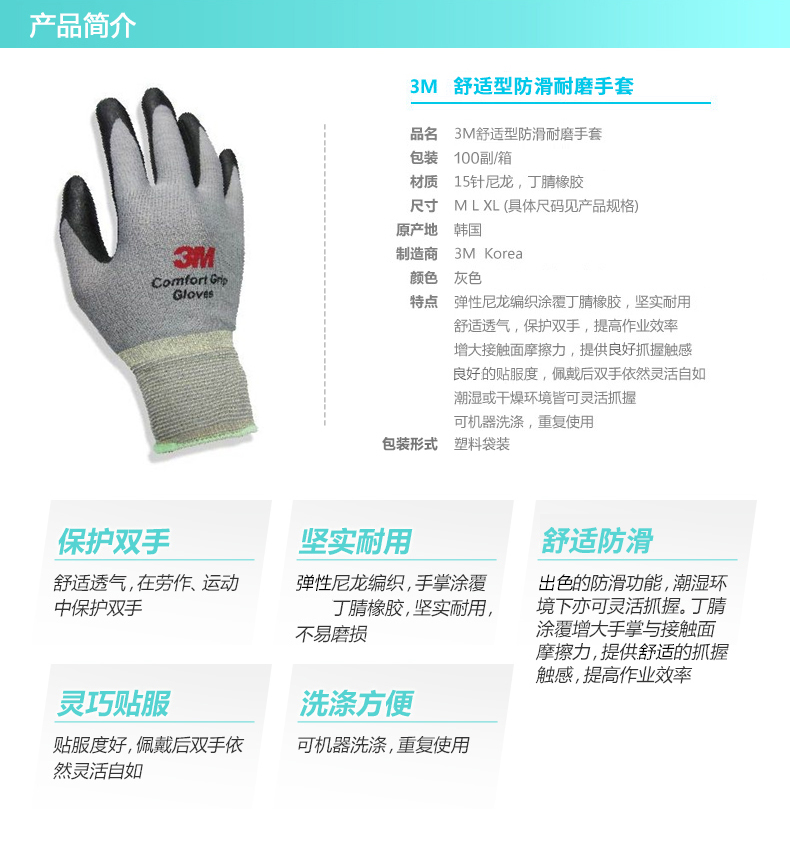 代尔塔 3副装防割劳保工作手套 VENICUT44(4级耐磨4级防割)