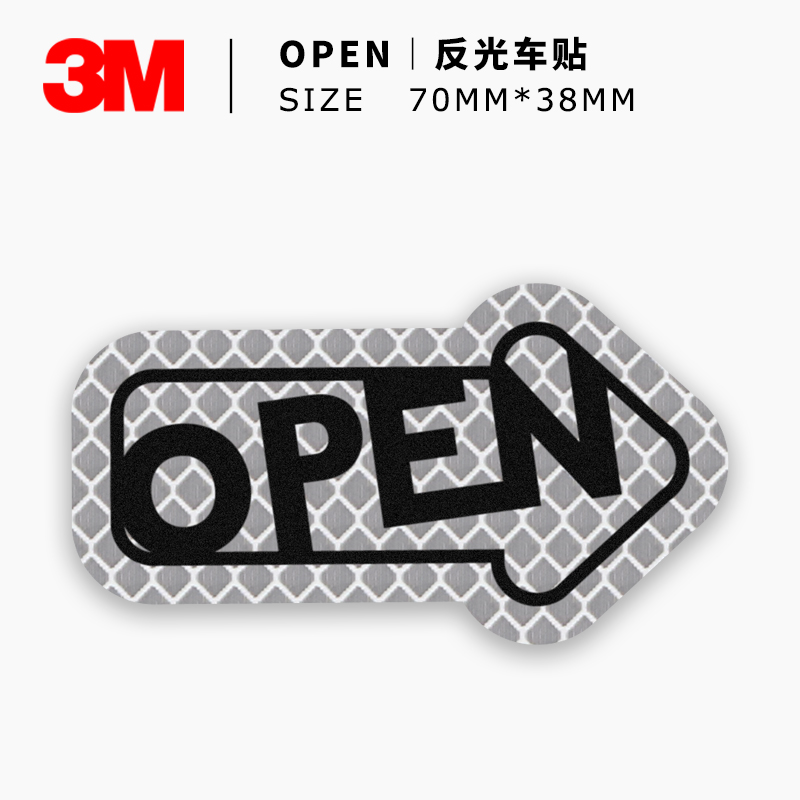3M钻石级汽车开门安全警示贴防撞条open反光贴车贴纸车门警示贴1套(4片)黄色