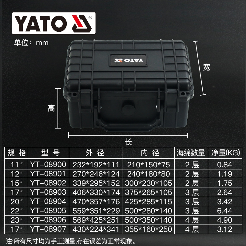 易尔拓(YATO)设备箱拉杆工具箱多功能仪器箱手提式仪表箱大号工业级防水箱防潮箱17寸防护箱YT-08903