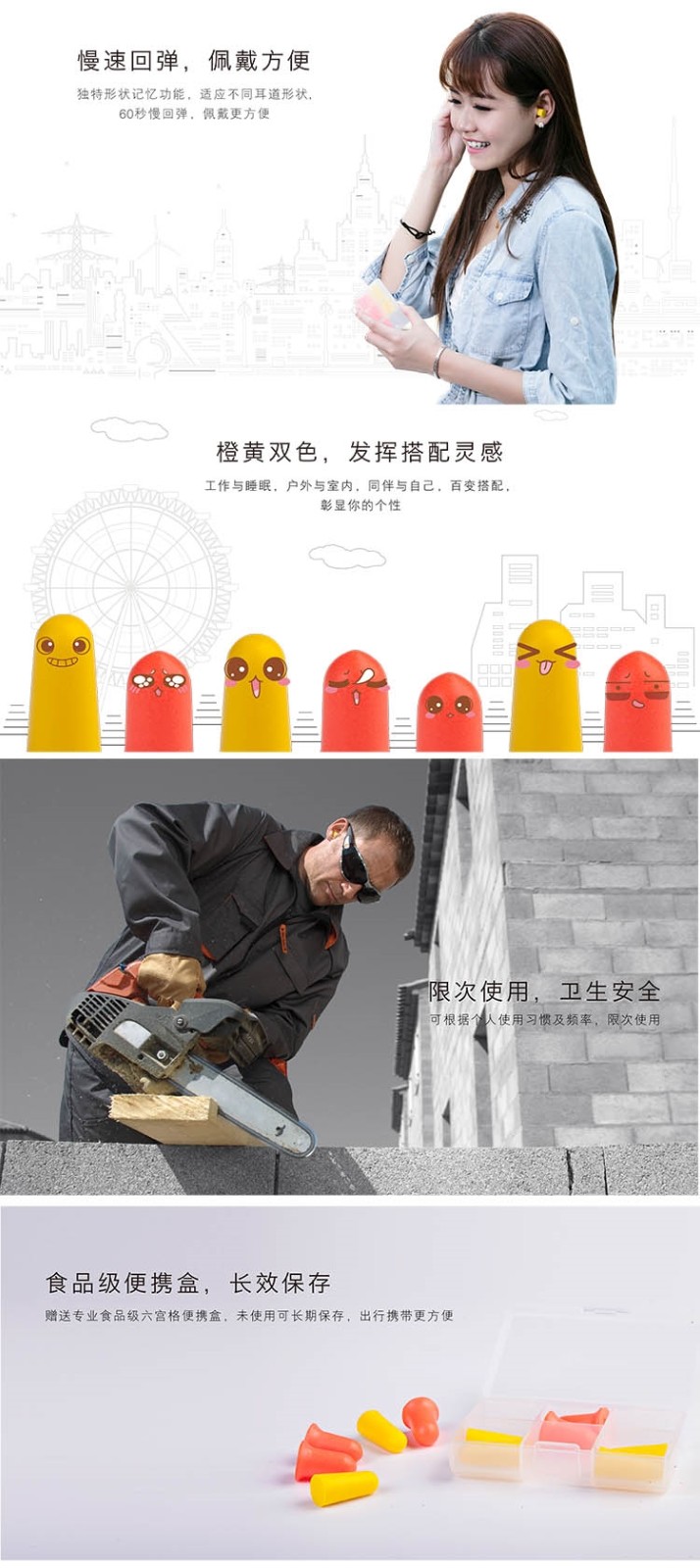 3M 1110子弹型带线耳塞 隔音耳塞 降噪睡眠 弹性舒适10付装送耳塞盒