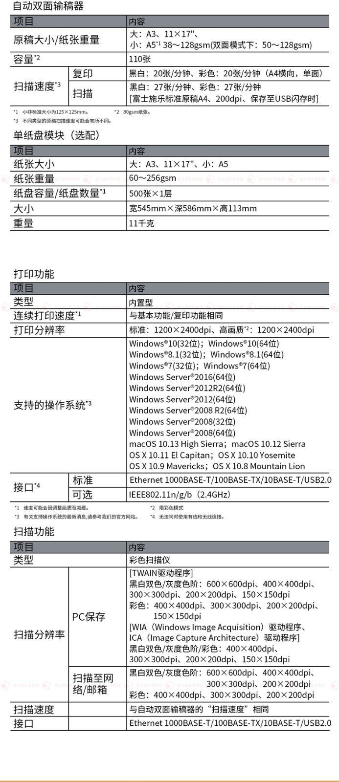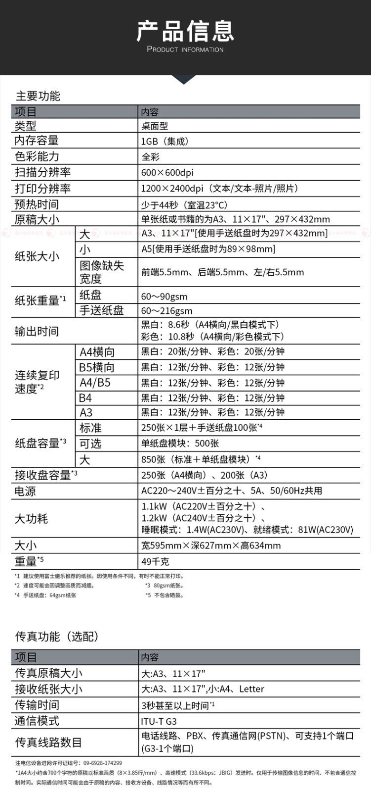 品 牌 型 号 : 富士施乐(Fuji Xerox) 2020cpsda升级版标配含输稿器及双面器+第二纸盒