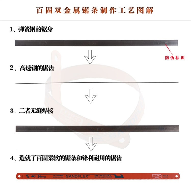 百固 3906-300-24-100 24T 红鱼双金属锯条 橙色