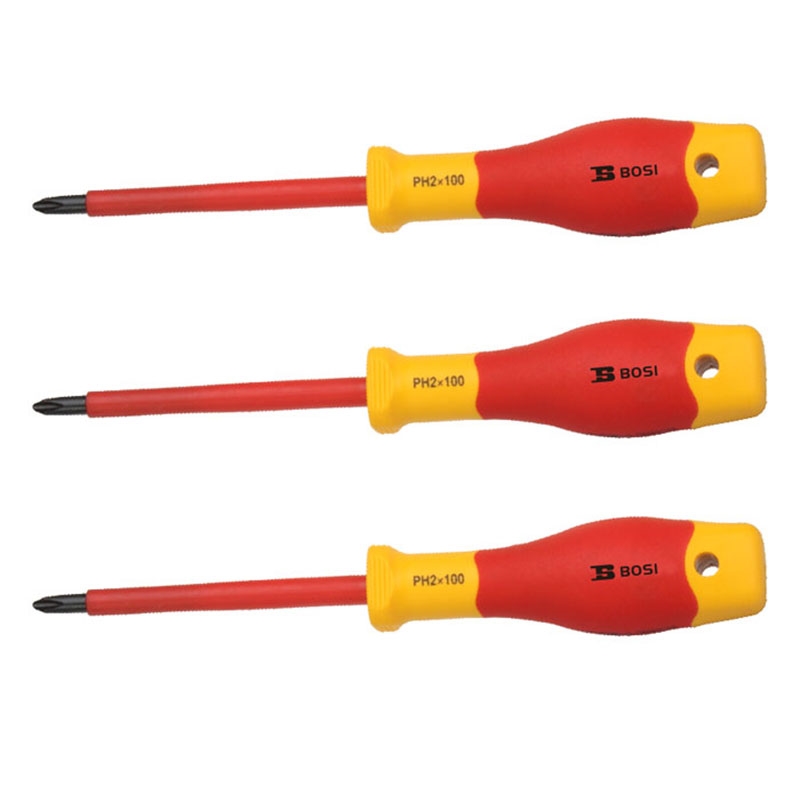 波斯 BS600023 PH2*100mm VDE绝缘十字螺丝批 红黄色