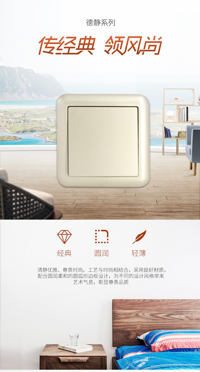 ABB开关面板插座 德静珍珠金 一开双控开关单开双控开关AJ105-PG