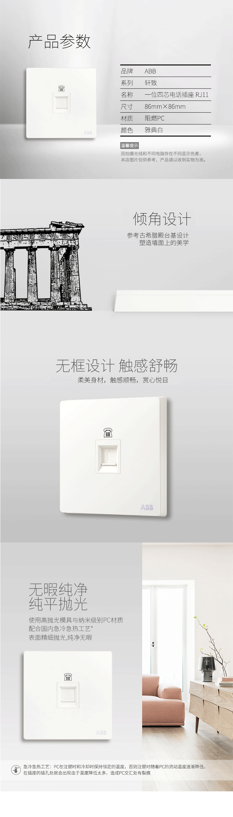 ABB开关插座 由雅白色 三开双控开关 三位双控开关AP10753-WW