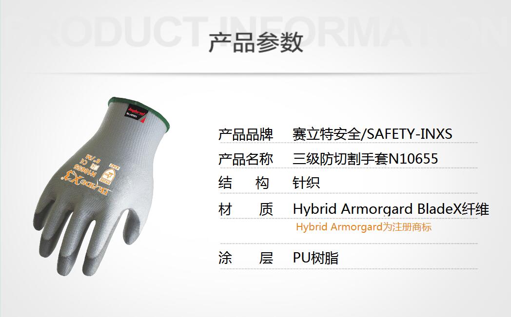 赛立特安全(SAFETY-INXS)N10655 防切割3级 舒适耐磨 手掌浸灰色PU 白色内胆劳保手套 (3双) 灰和白 9码