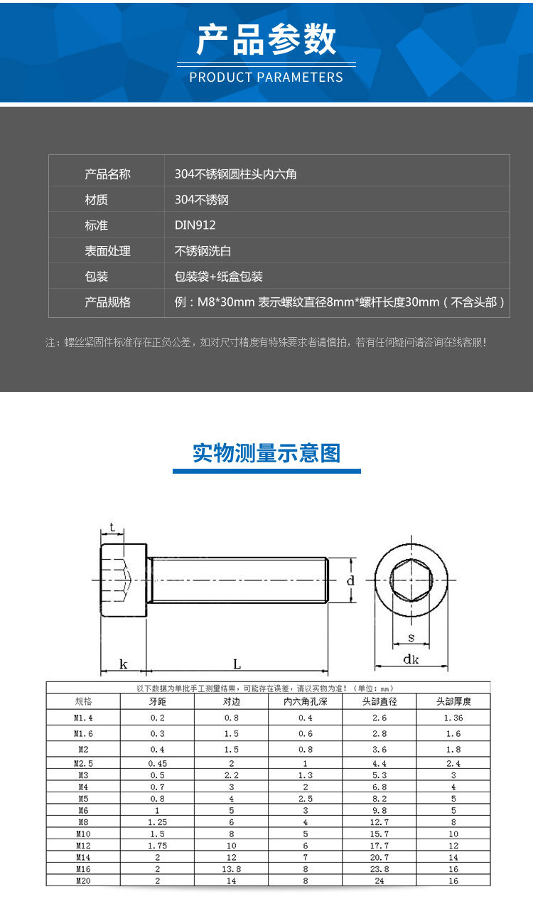 304 DIN912 M3*30 内六角圆柱头全牙螺钉 滚花 (按盒销售)(0.28千支/盒)