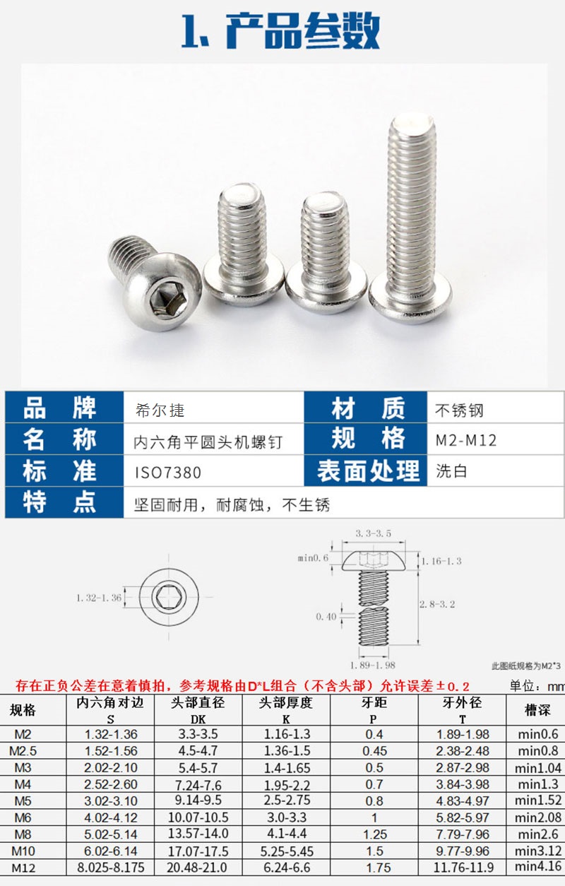 304 ISO7380 M6*40 内六角平圆头螺钉 全牙 (按盒销售)(0.35千支/盒)