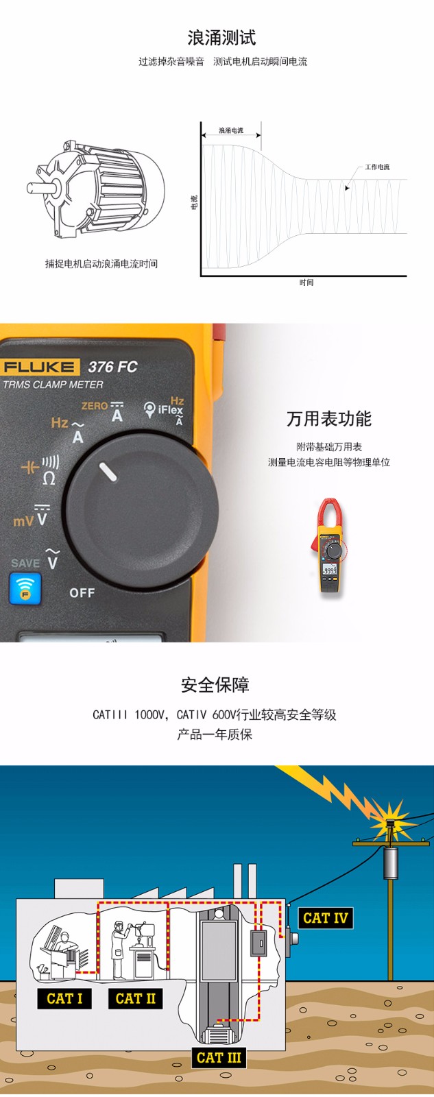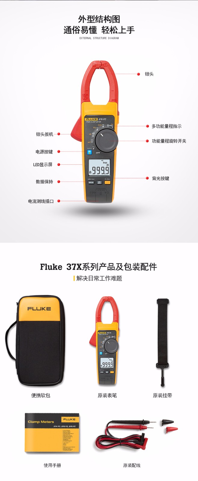 福禄克(FLUKE)376FC/CN 真有效值钳形电压电流表 大电流2500A含无线WIFI