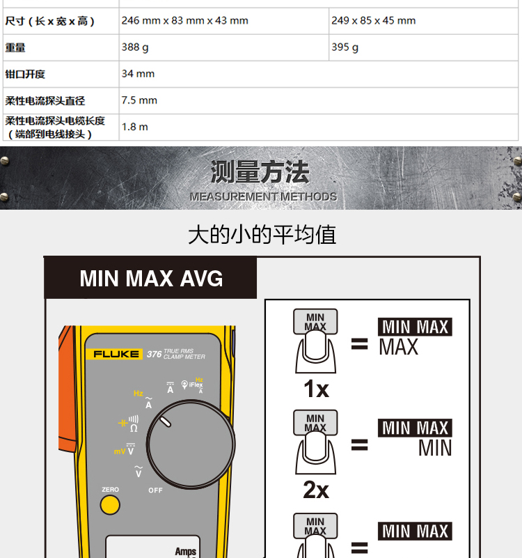 福禄克(FLUKE)376FC/CN 真有效值钳形电压电流表 大电流2500A含无线WIFI