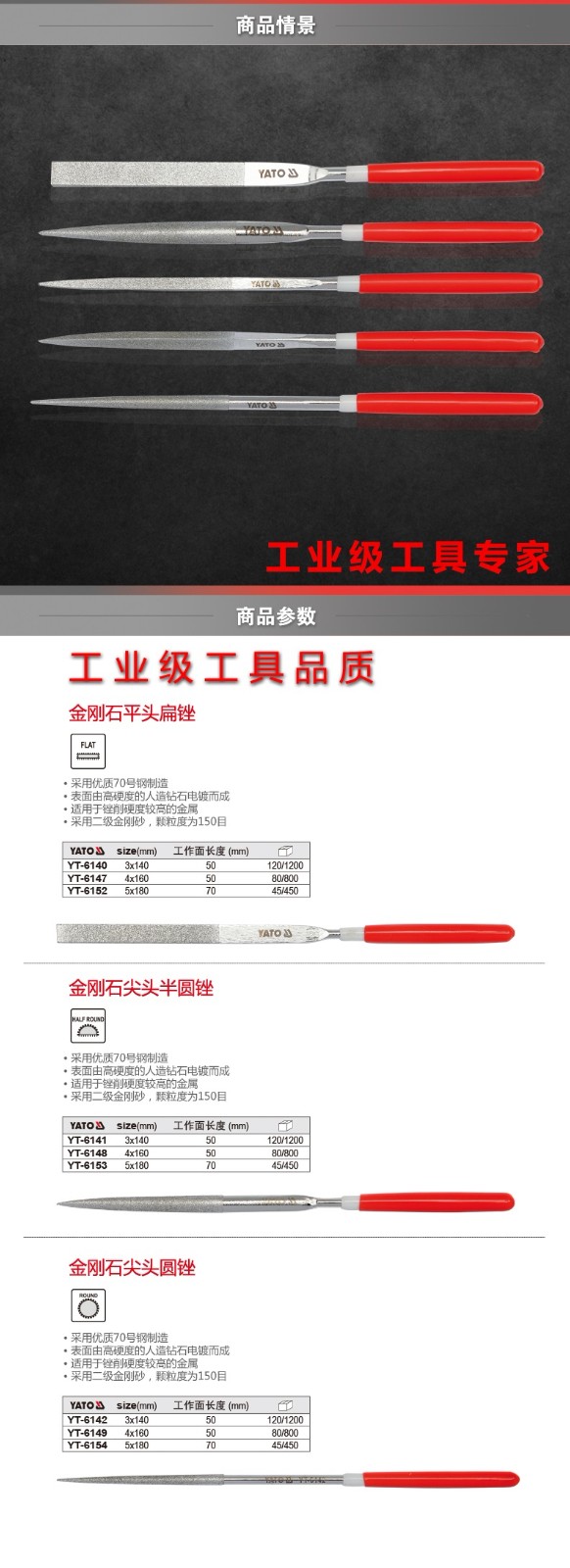 易尔拓 锉刀 金刚石整形锉 金刚石尖头半圆锉(5*180mm) YT-6153