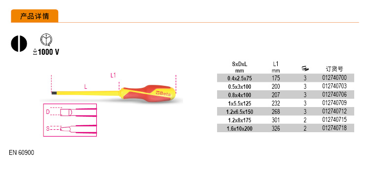 易尔拓 原装进口电工磁性改锥 绝缘螺丝刀 一字8.0x175MM YT-28136