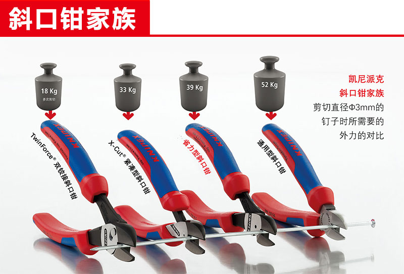 凯尼派克(KNIPEX)74 02 250 省力型斜口钳 抛光 双色手柄 250mm 切割类工具 钢
