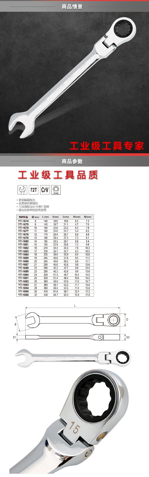 易尔拓 活头棘轮两用扳手 32mm YT-1696