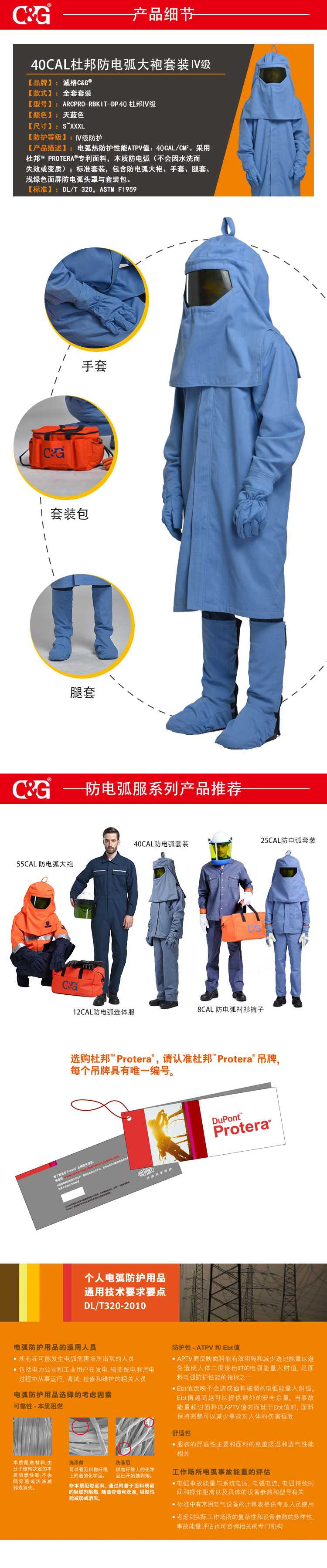 诚格(C&G)ArcPro-RBkit-DP40 40cal 杜邦防电弧大袍套装 天蓝色 XXL