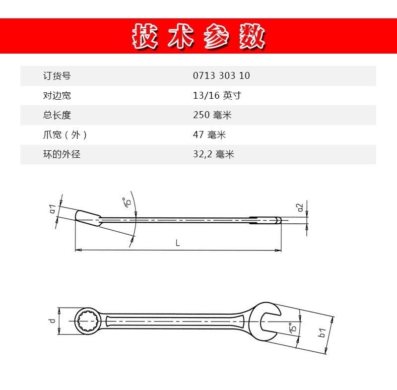 伍尔特 D13/16 呆头梅花扳手 13/16