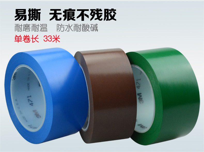 3M旗舰店 471警示胶带地面标识汽车警示用品无尘车间标识胶布绿色80毫米宽*33米长