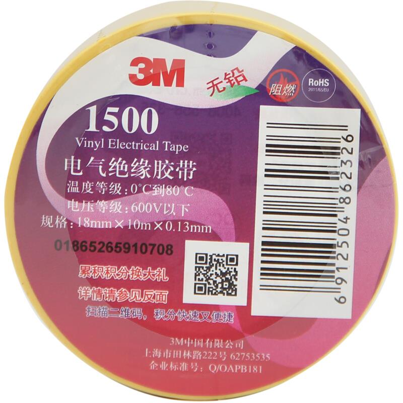 3M1600#PVC绝缘阻燃电工胶布电气绝缘胶带耐磨防潮耐酸碱无铅安全18mm*20m红色1卷
