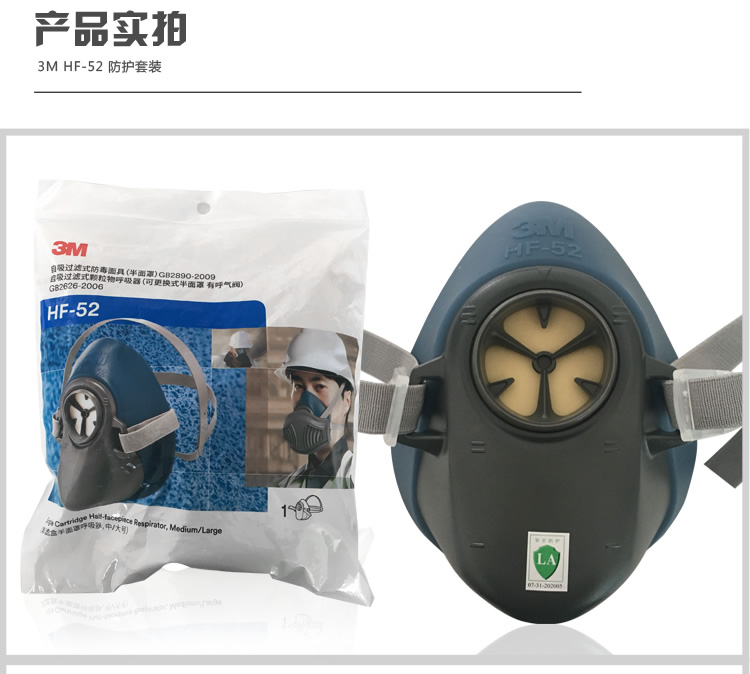 3M HF-52三件套防尘面具 防毒面具 工业粉尘打磨口罩 含滤棉防尘三件套