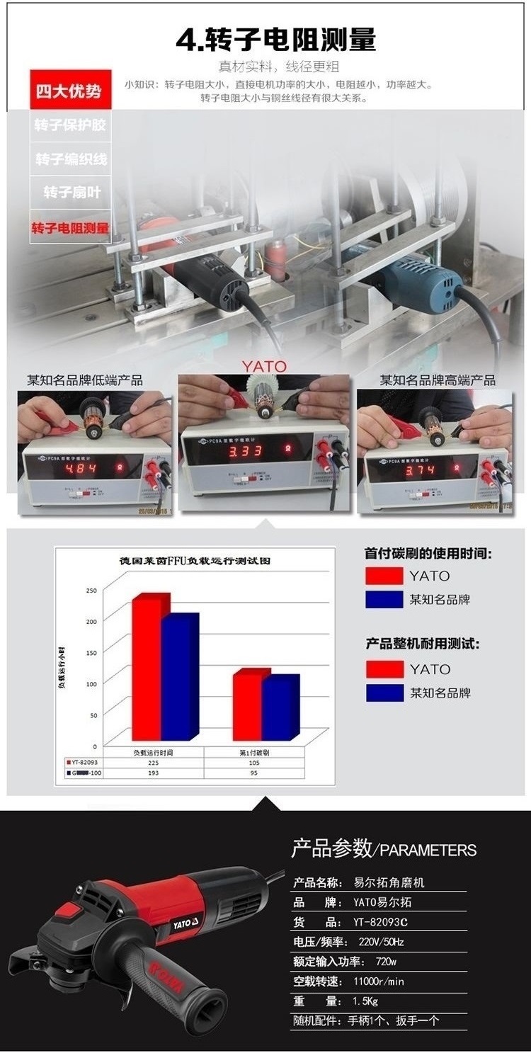 易尔拓(YATO)多功能角磨机 切割角向打磨抛光金属打磨YT-82093C