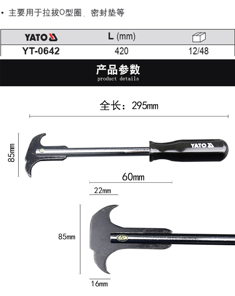 易尔拓(YATO)密封圈拉拔器汽修工具油封起子油封拉拔器油封扳手汽保工具YT-0642