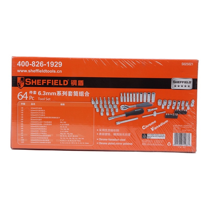 钢盾 S025021 6.3mm套筒套装 万用接杆 棘轮扳手64PC