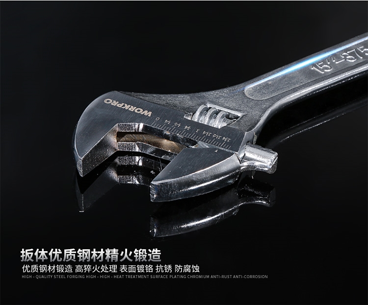 万克宝(WORKPRO)W072006N多功能活动扳手18英寸碳钢光柄活扳手激光刻度