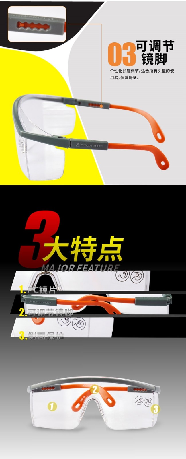 代尔塔 101117 护目镜 防冲击 防刮擦 防雾 防护眼镜 防紫外线白色