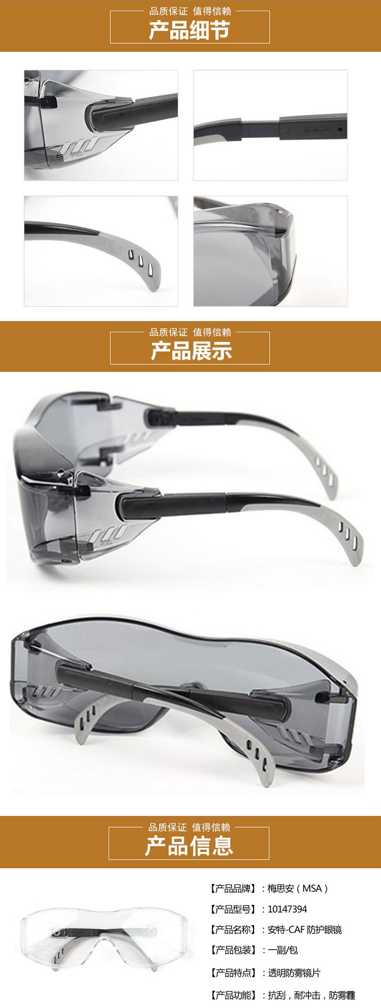 梅思安 /MSA 10147394 安特防护眼镜 近视远视防护镜腿长度和角度可调1副货期45-60天