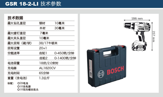 博世(BOSCH) GSR 18-2-Li 充电式电钻/起子机