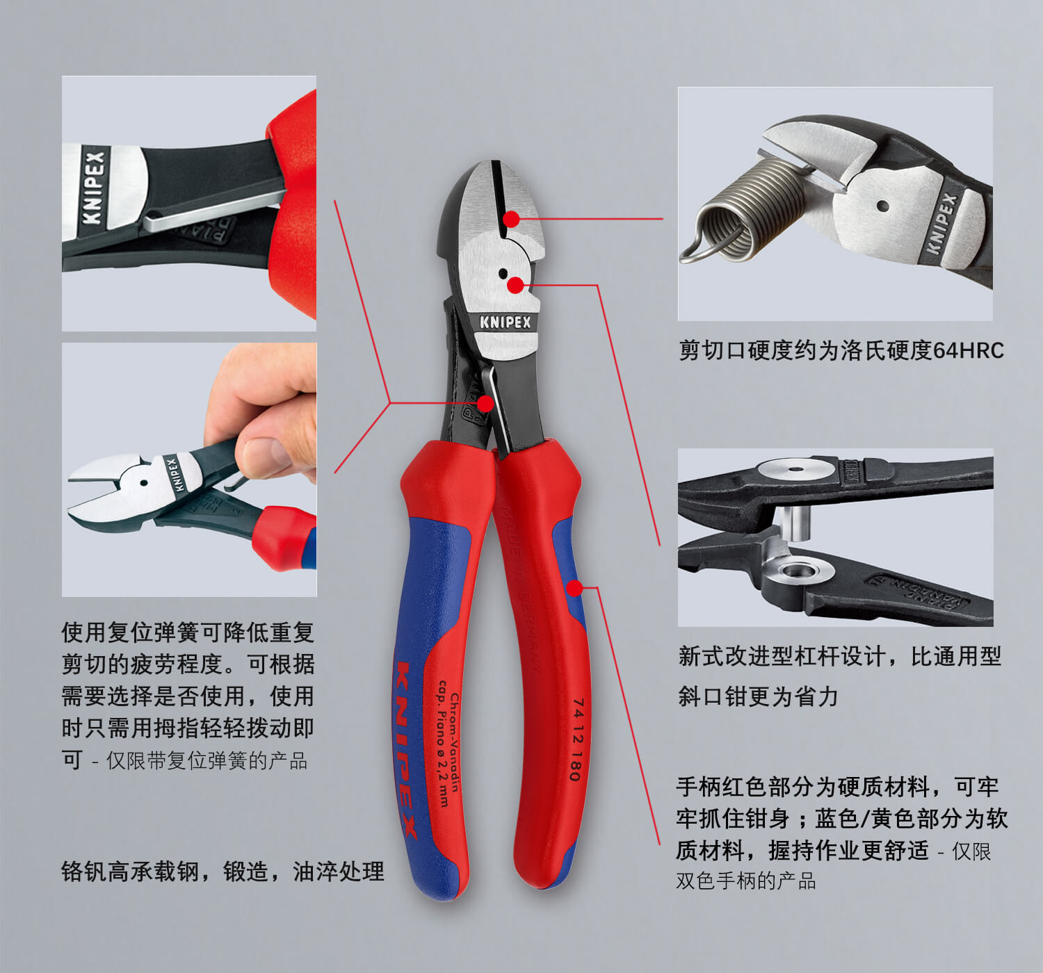 凯尼派克(KNIPEX)74 01 250 省力型斜口钳 抛光 塑料套柄