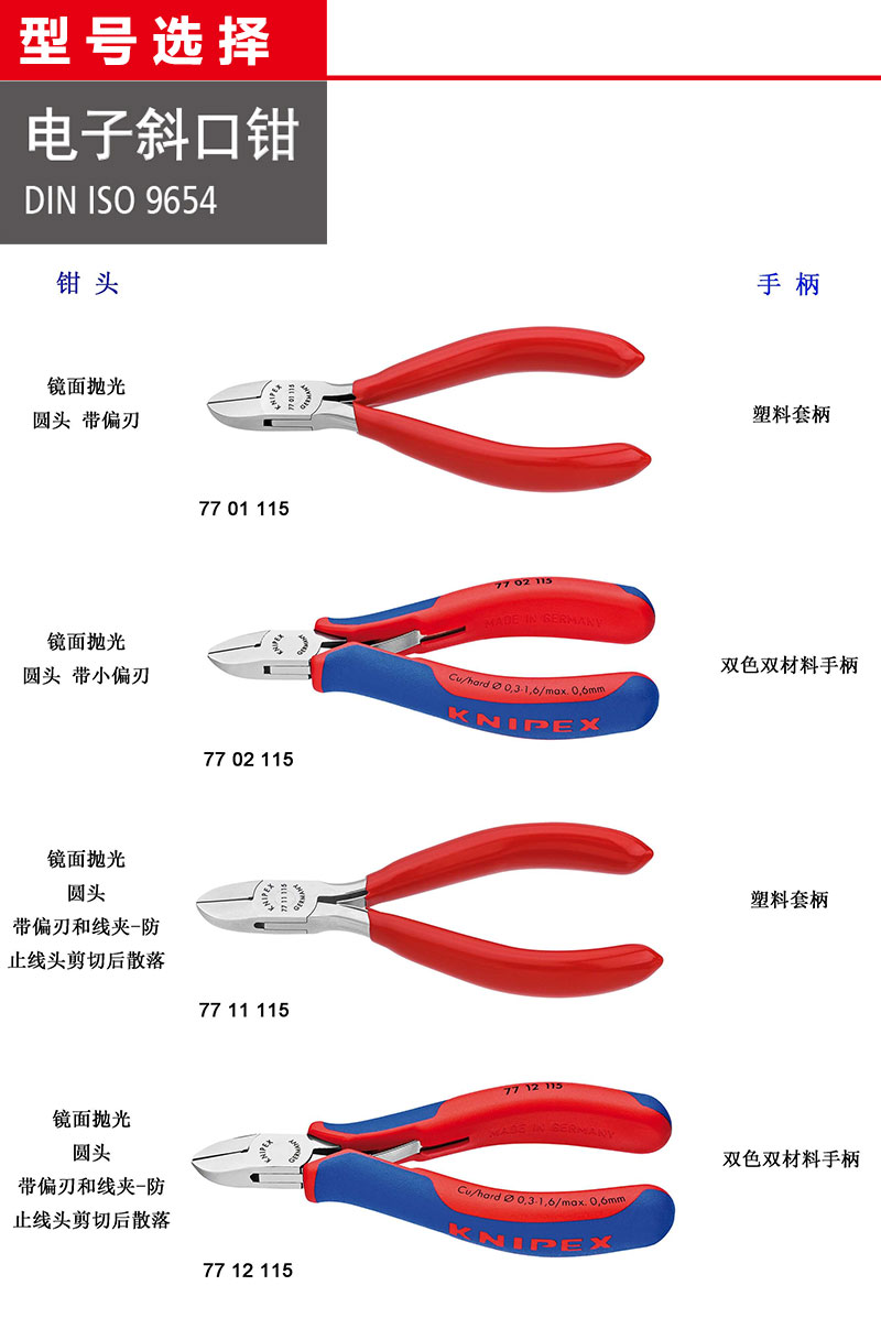 凯尼派克(KNIPEX)72 01 160 斜口钳 抛光 塑料套柄 160mm 切割类工具 钢