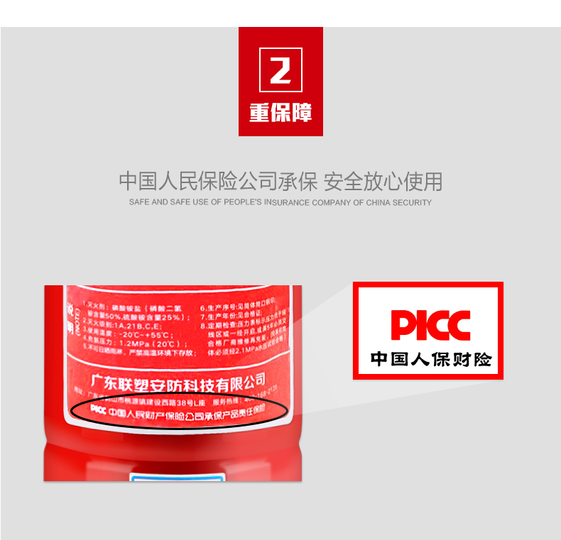 联塑(LESSO)MFZ/ABC2AS 手提式干粉灭火器 2KG