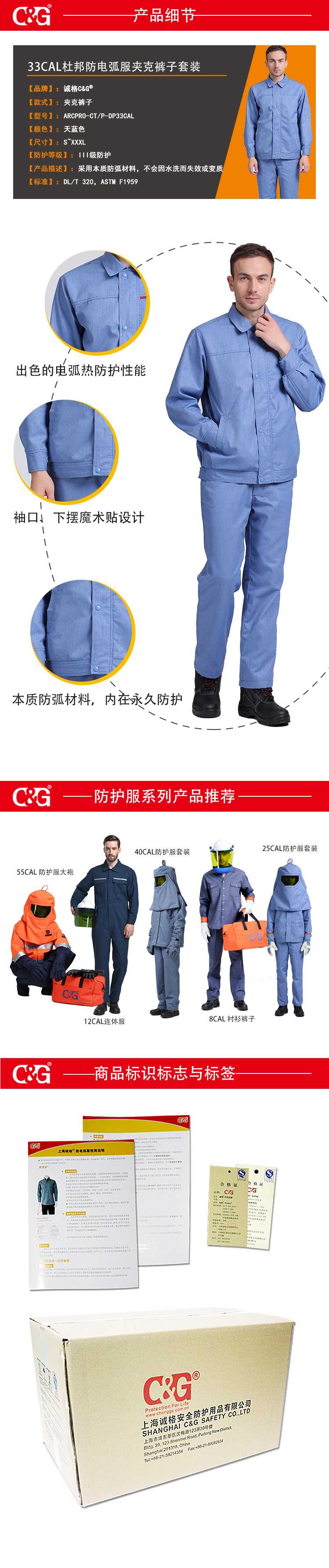 诚格(C&G)ArcPro-CT/P-DP33 33cal 杜邦防电弧夹克裤子套装 天蓝色 M
