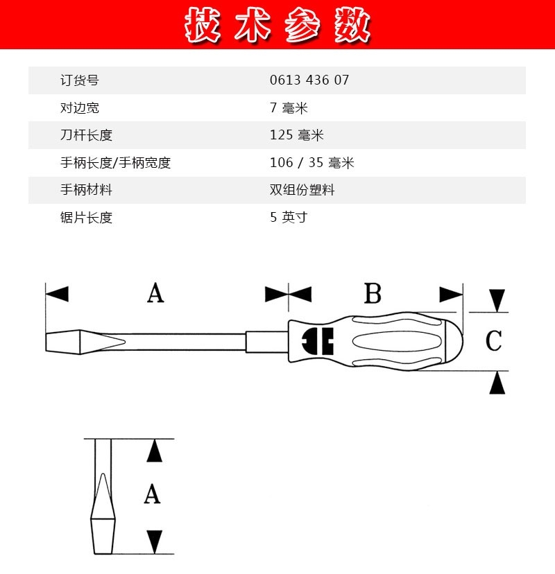 伍尔特 61343607 六角套筒螺丝刀 7mm
